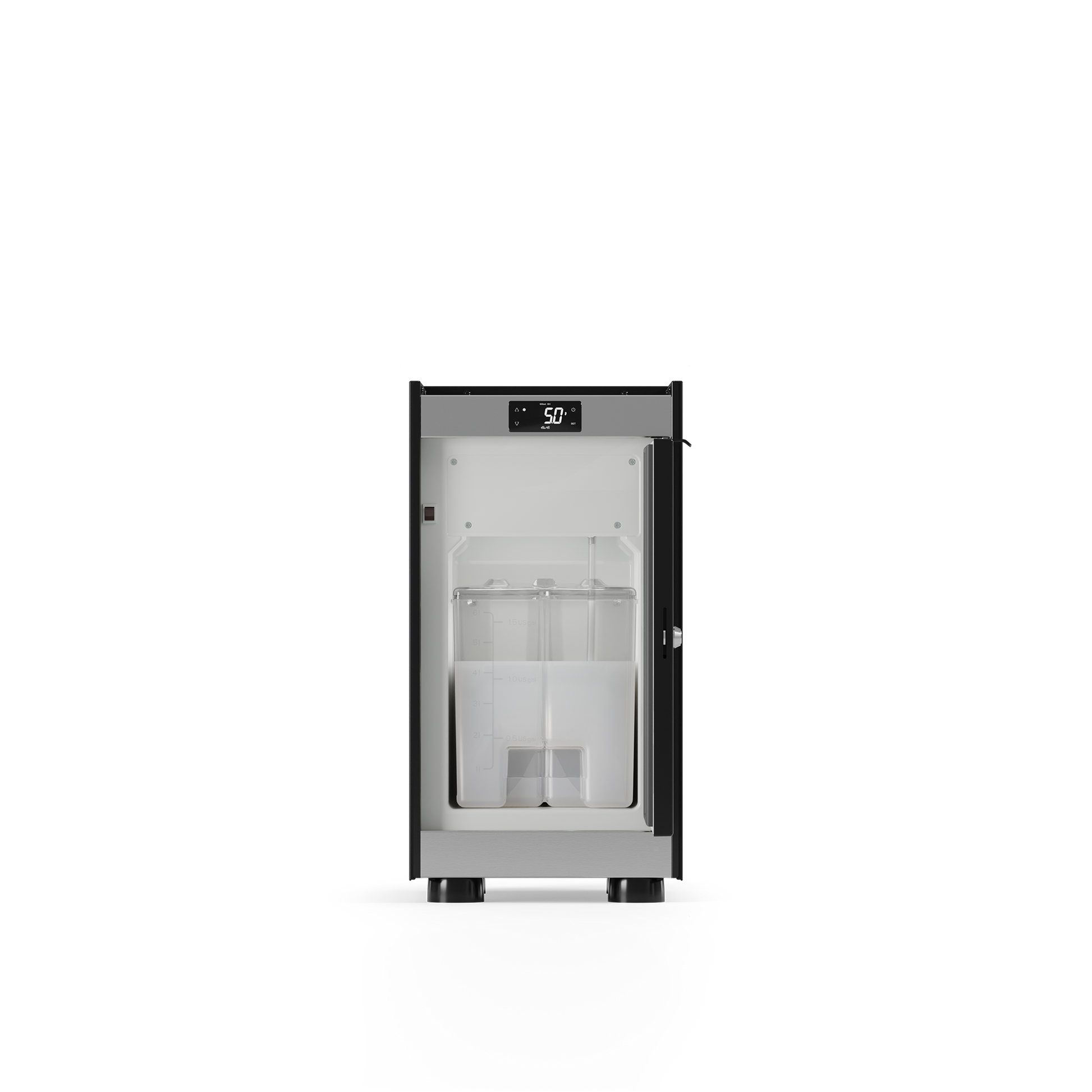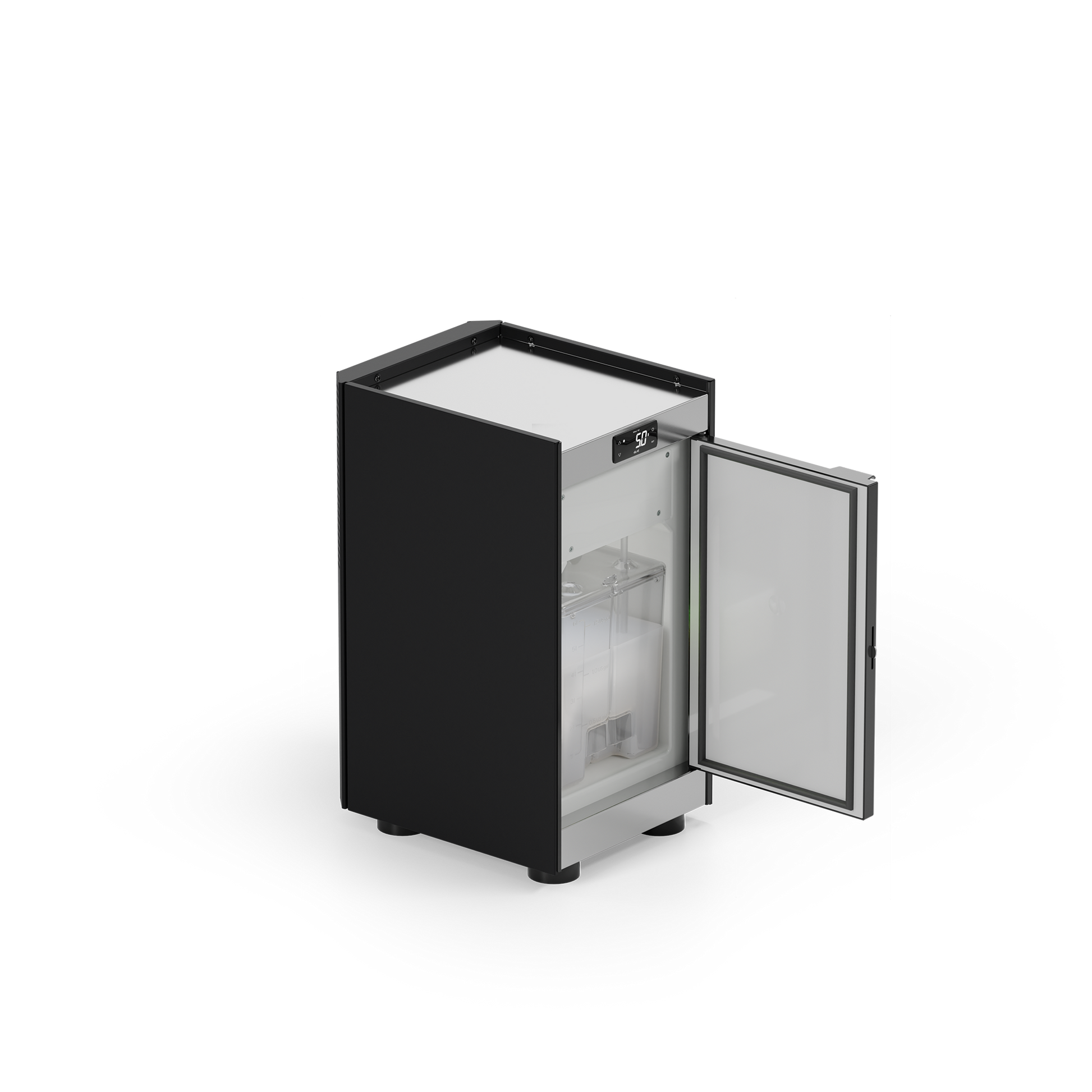 6 litre fridge with display, level sensor and integrated pump module. On request, the MK6 fridge is available with the CMF system for cold milk foam (Next NMS+ and One Top Milk only) or with the lactose-free milk system (Next NMS+ only). According to configurations, It can also be ordered with one or two milk containers. Only for MoDe Pro Milk, it can be installed on either the right or left side of the machine. With the SMPU pump modules, the MK6 fridge can also be installed under the counter to free up space on the worktop.