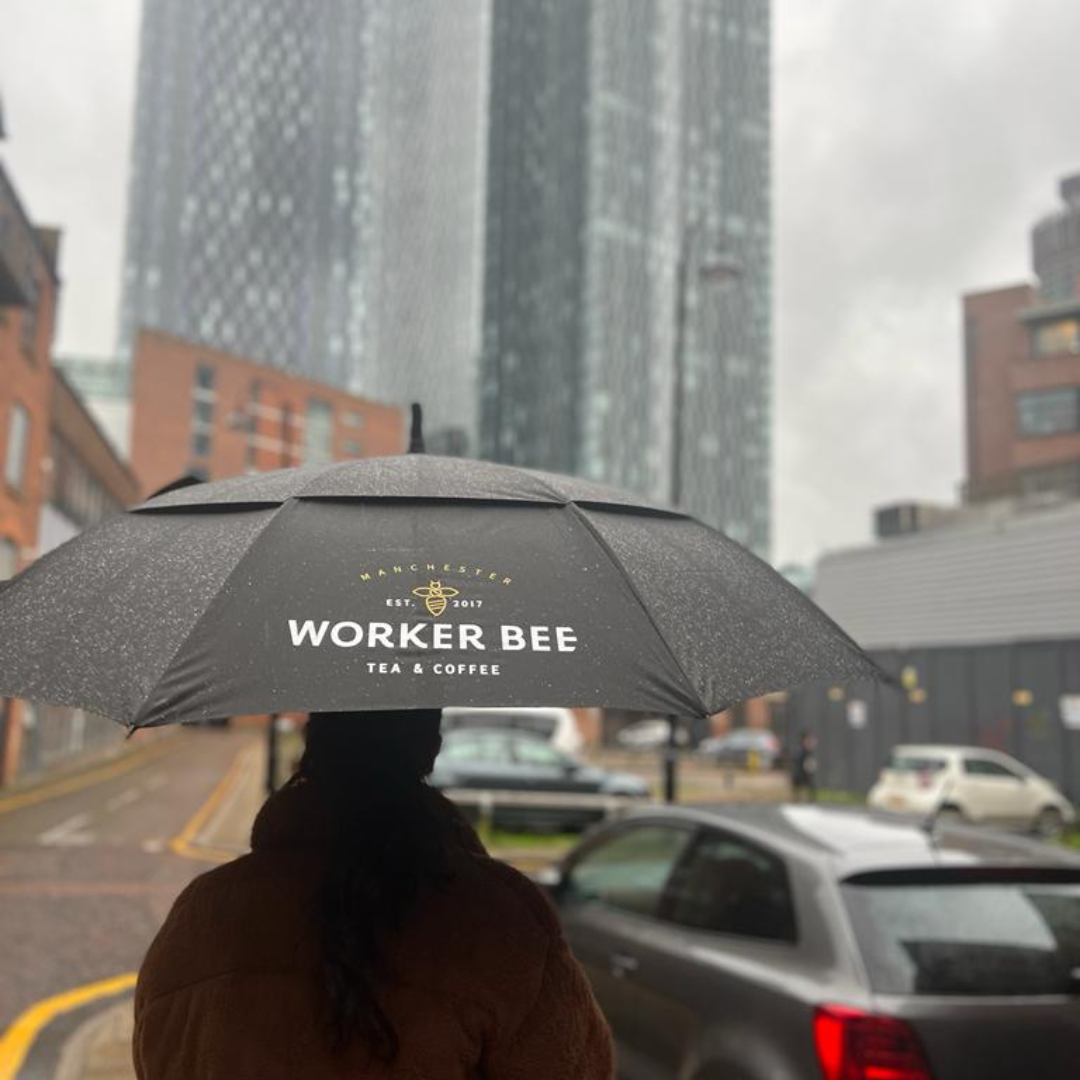 Glad you're enjoying showing off your new Worker Bee umbrella. Thanks for supporting our business and helping to spread the Worker Bee word. We really do appreciate it Michael.